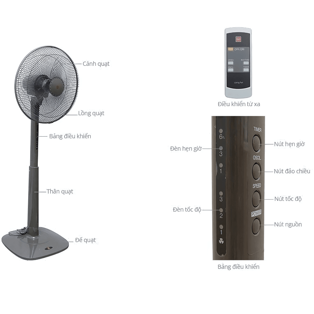 – Đường kính cánh quạt: 40 cm (3 cánh, nhựa trong suốt cao cấp, bền bỉ, dễ vệ sinh)